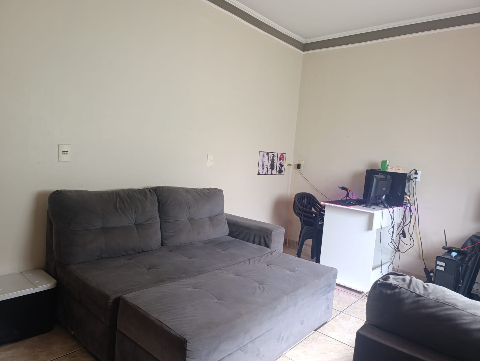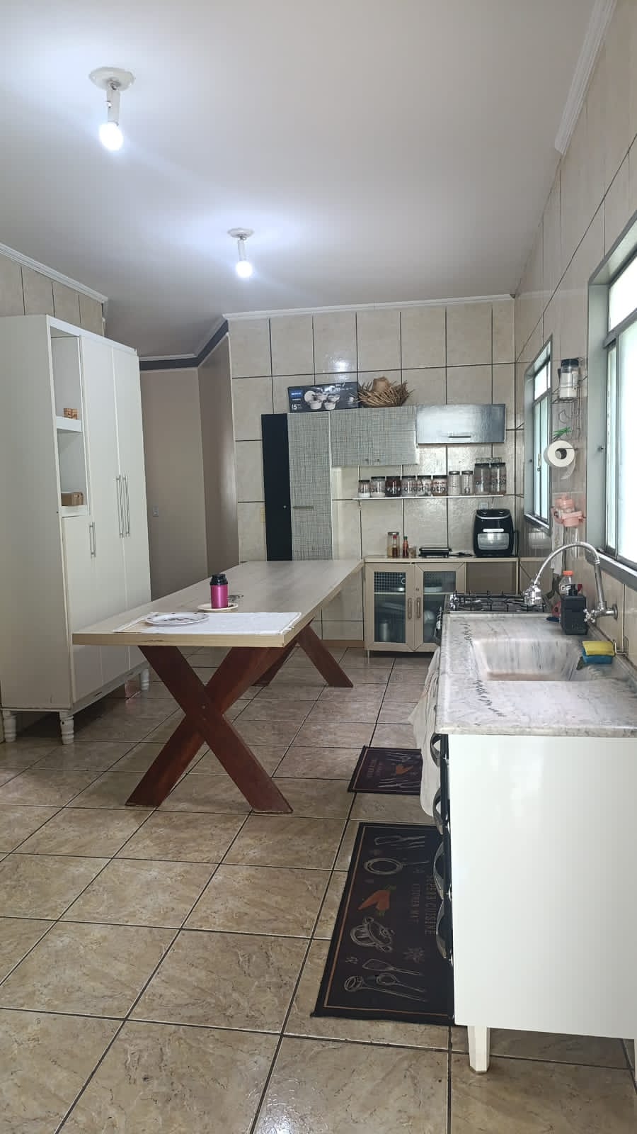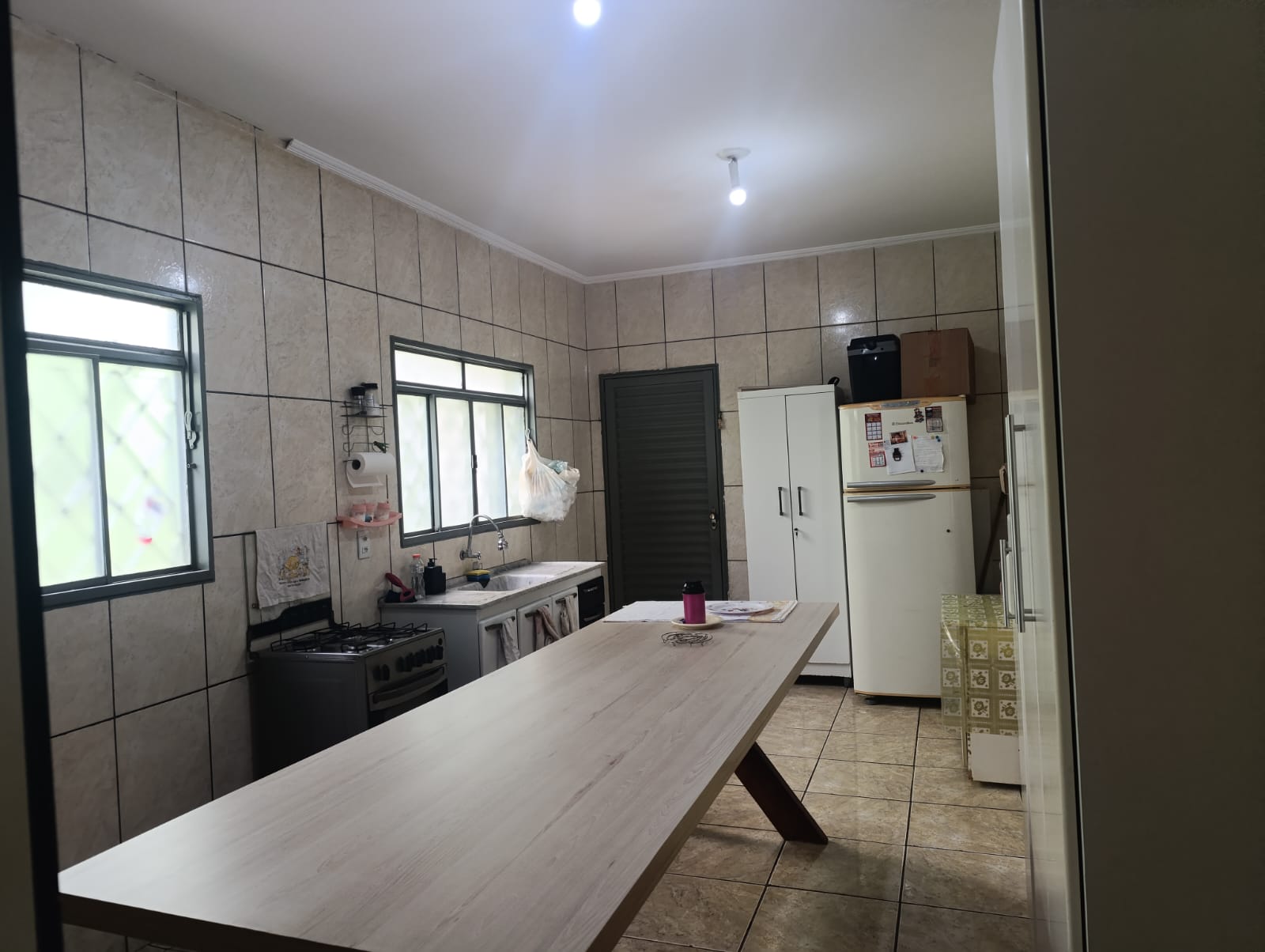 Casa térrea com 110 m² de construção, 03 dormitórios (01 suíte + 02 quartos), banheiro social, sala, copa/cozinha, área de serviço e quintal pequeno no fundo e lateral. Acabamento em cerâmica e áreas molhadas azulejadas.