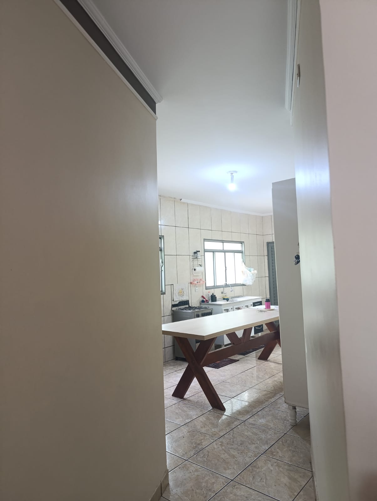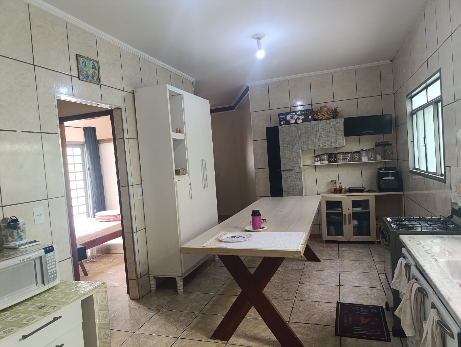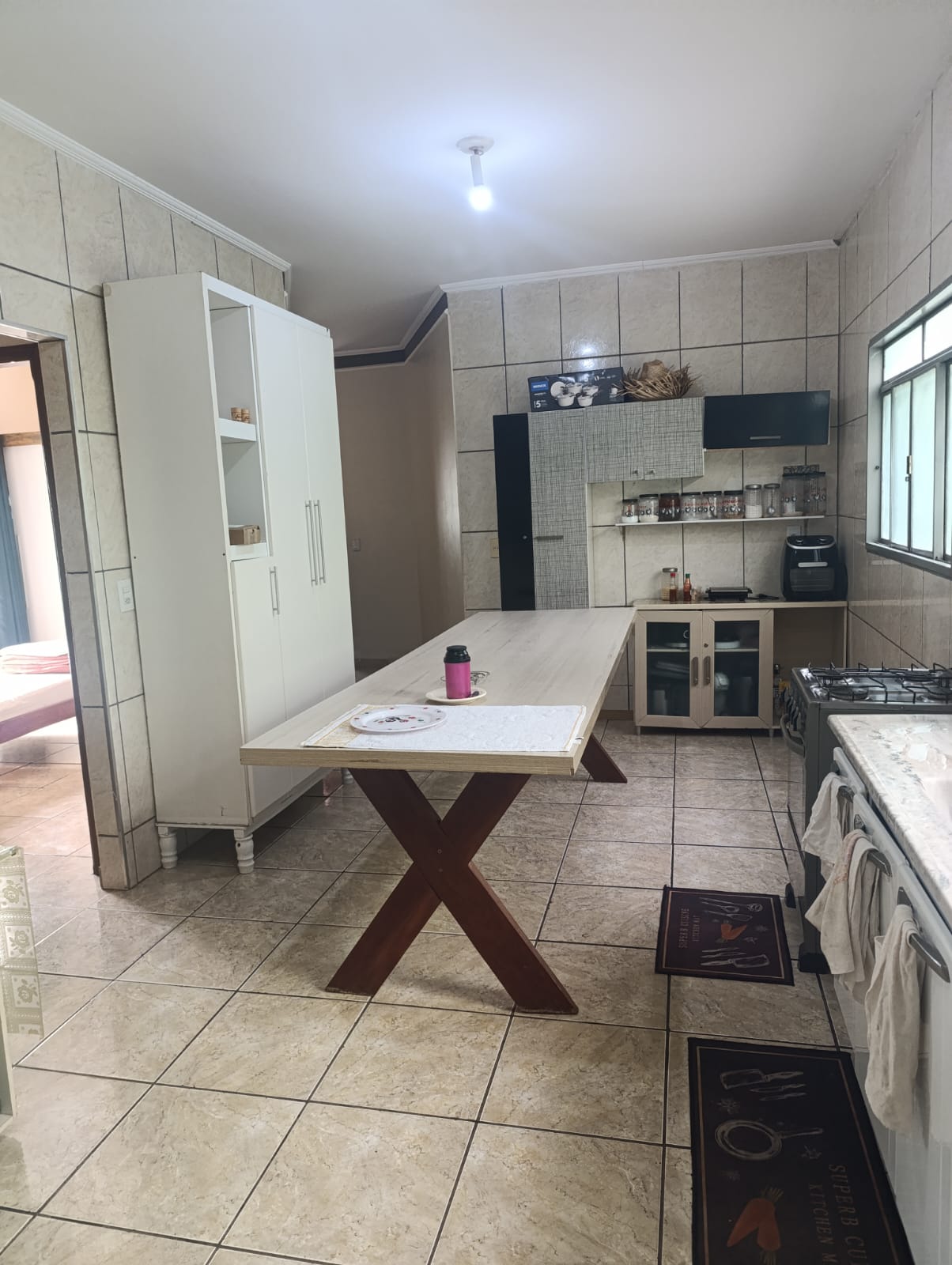 Casa térrea com 110 m² de construção, 03 dormitórios (01 suíte + 02 quartos), banheiro social, sala, copa/cozinha, área de serviço e quintal pequeno no fundo e lateral. Acabamento em cerâmica e áreas molhadas azulejadas.