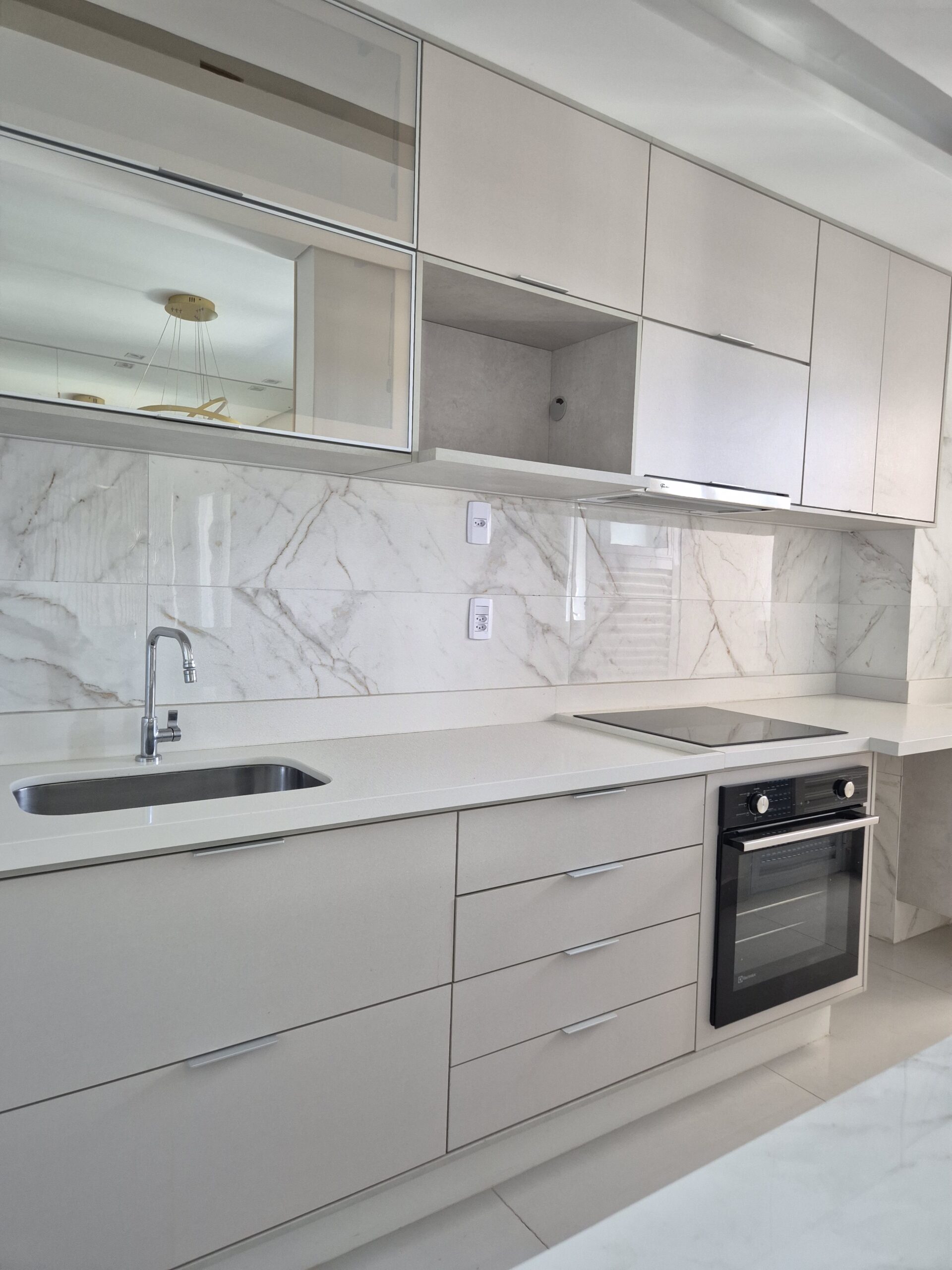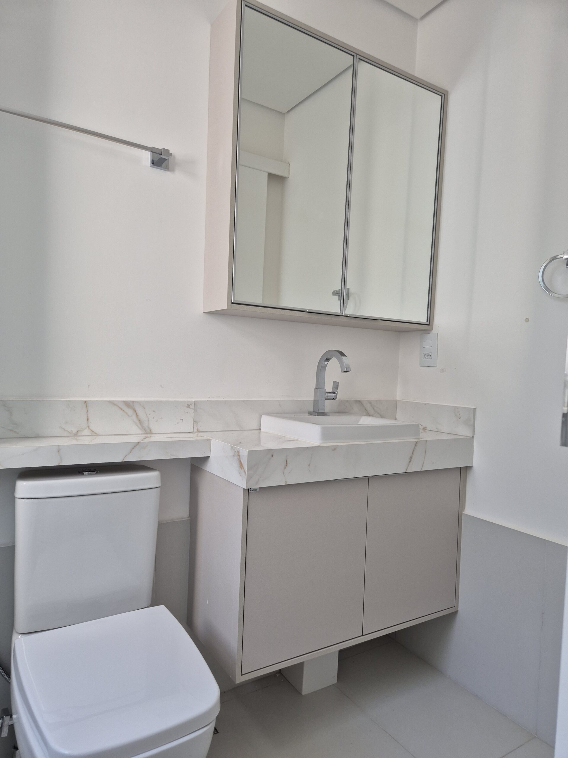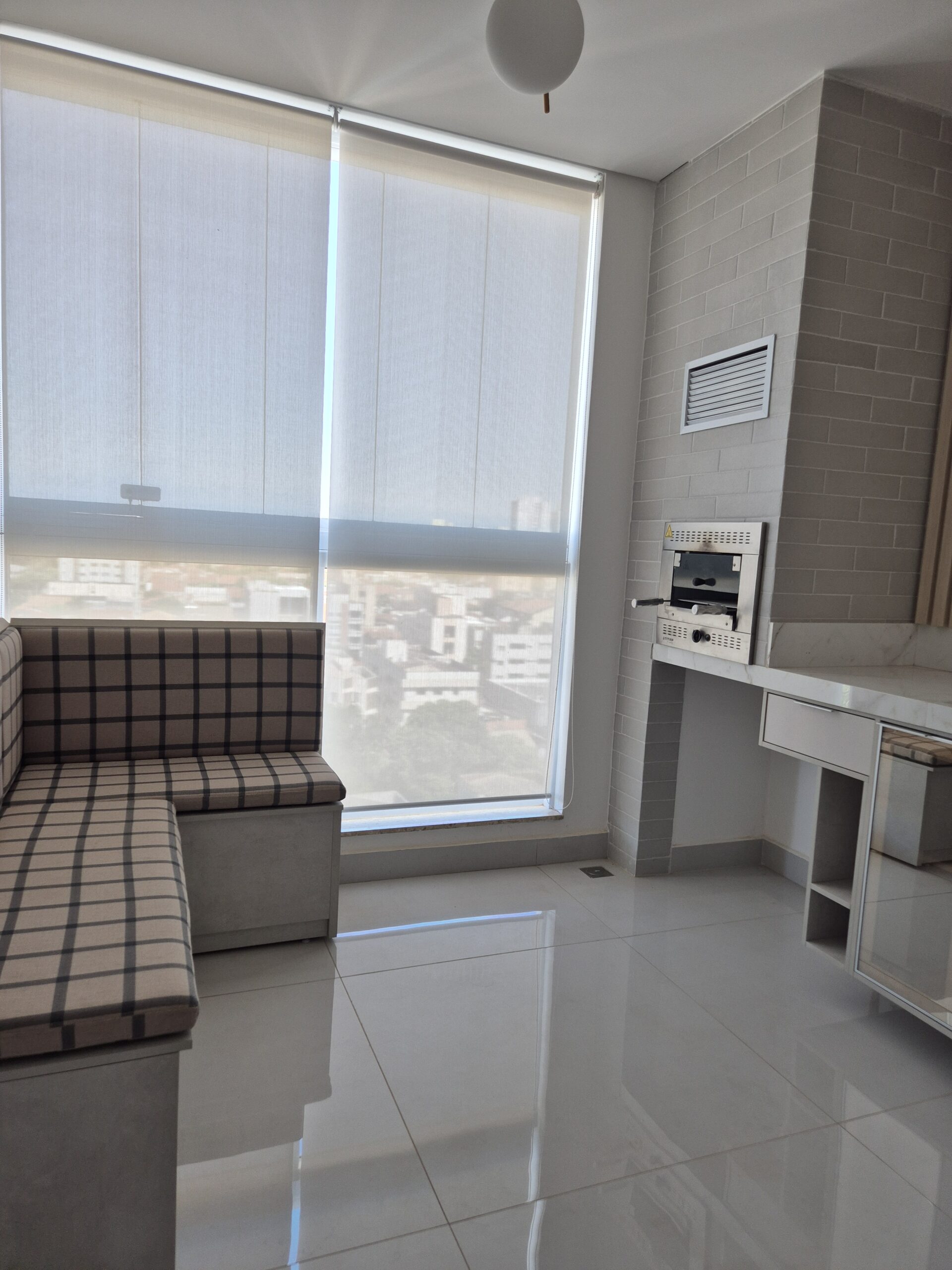 Ed. Terrace Residence VENDA – 03 dormitórios sendo 02 suítes, escritório, lavabo e sala 2 ambientes. Cozinha Italínea com fogão de indução e forno elétrico embutido; área gourmet integrada com churrasqueira e balcão. Ar-condicionado na sala e quartos, cortinas/persianas. Banheiros com armários e box blindex; suíte master com dois chuveiros e duas cubas.