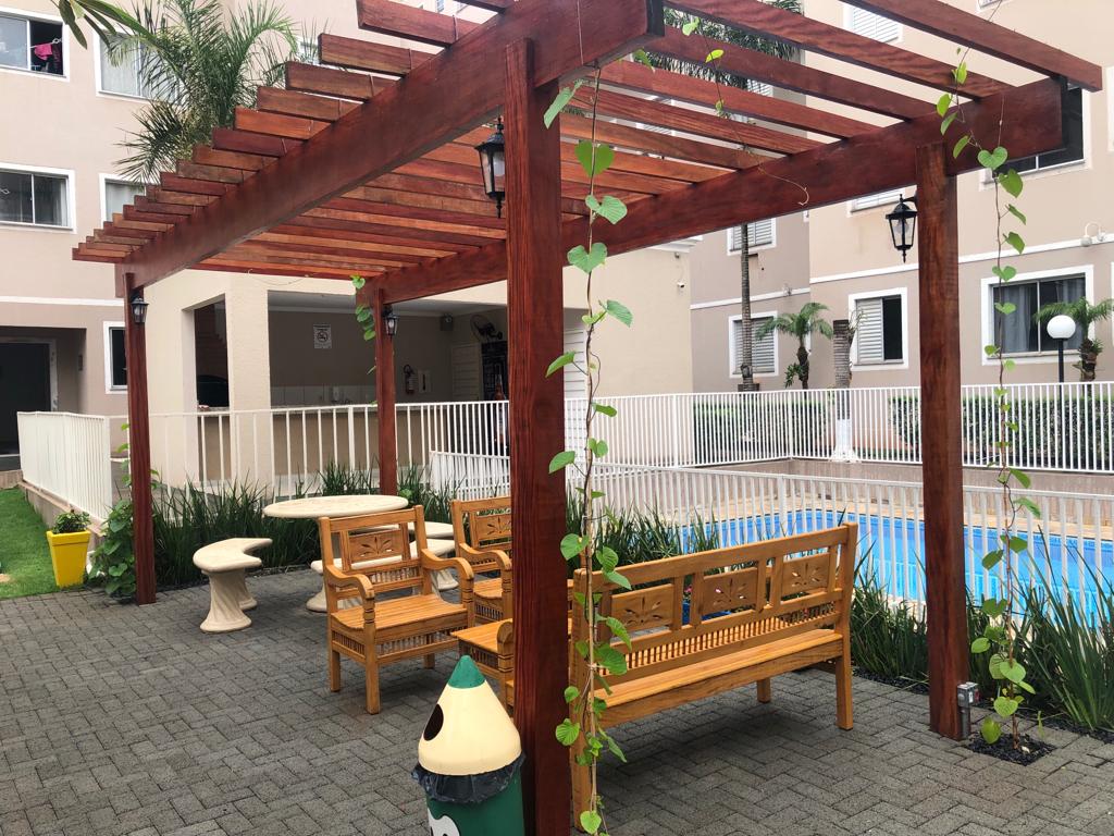 O condomínio oferece estrutura completa de lazer e segurança, com salão de festas, parquinho, piscina, portão eletrônico, interfone, portaria 24 horas e condomínio fechado,